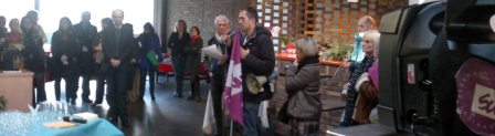 Il n’en a pas eu le loisir. La cérémonie a été envahi par les personnels qui combattent depuis septembre 2012 les modifications des conditions d’indemnisation des frais de repas et de transport.