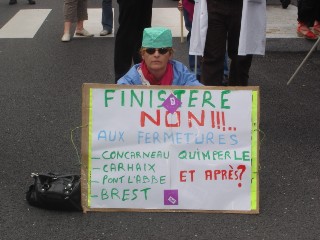 Celui-ci s’est contenté de réciter l’habituelle litanie, en prétextant la rationnalisation de l’argent de la SECU, par des fermetures et des restructurations comme à Redon, Carhaix, Vitré, Quimperlé etc, d’ailleurs pour Carhaix le directeur de l’ARH n’a pas hésité à dire que c’était les médecins eux-mêmes qui étaient pour la fermeture !?.