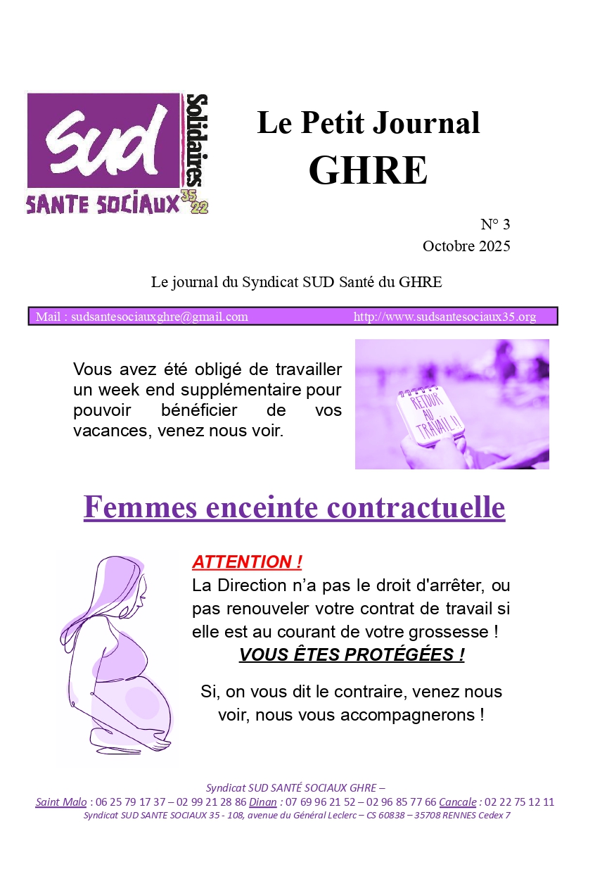 Retrouvez ci-dessous le n°3 du « Le Petit Journal GHRE » de notre section SUD Santé GHRE