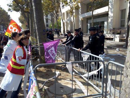 Nous avons fait face à un cordon de gendarmes mobiles protégeant le ministère où Marisol Touraine se mure dans l’indifférence. Une délégation a été reçue. Discours du ministère : Baissez la tête, fermez les yeux, un jour ça ira mieux !!!