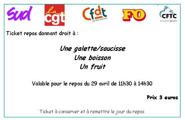 Venez retirer vos tickets repas dans nos locaux syndicaux au batiment des écoles de Pontchaillou ou lors de l’AG du 24 avril dans le bloc hôpital.