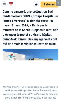 26 février, par Sud Santé Sociaux 35✊🟣PRESSE - @letelegramme - 26 Février 2026