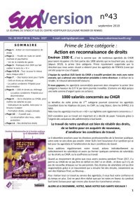15 novembre 2018, par Sud Santé Sociaux 35Le Syndicat SUD Santé-Sociaux du CHGR de Rennes édite la nouvelle édition de son journal à destination de l’ensemble des agents de l’établissement. Au sommaire du journal : · retour sur les instances CHSCT et CTE · Vers une remise en question des accidents de travail ? · Non paiements des Primes de dimanche et jours fériés · Nouveau Bâtiment G04/G06 · Organisation du travail de nuit · Avancement des titulaires, erreurs de la direction · Sécurité sociale : Hold-up au bénéfice de qui (...) -