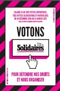 16 décembre 2016, par Sud Santé Sociaux 35Les salarié-es des très petites entreprises (TPE), des très petites associations (TPA) ou du particulier employeur voteront par internet et par correspondance du 30 décembre 2016 au 13 janvier 2017.
